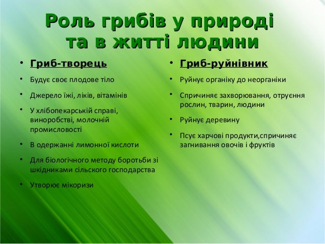 Прочитати п.57, викон. завд. в зошиті стор.72-73( багато учнів уже зробили ці завдання, значить читаємо, розглядаємо слайди, повторюємо все про гриби!!! ), виписати значення грибів .